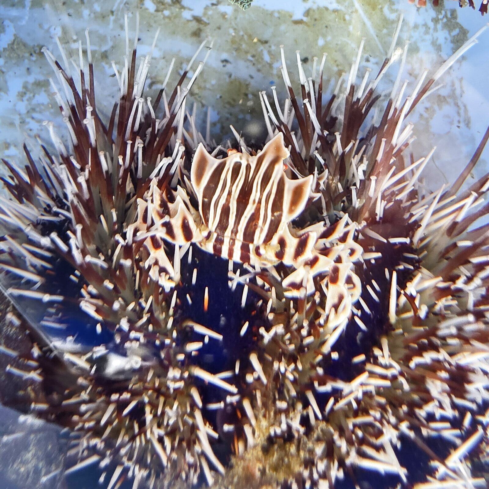 ※…イイジマフクロウニ、ラッパウニ、シラヒゲウニ等に寄宿して生活をしています。